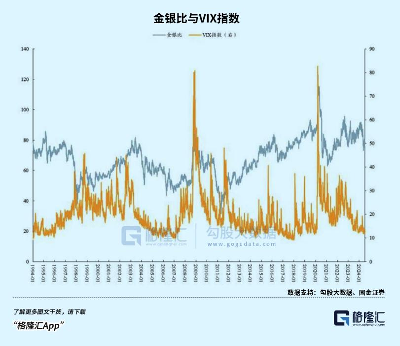这表明,在VIX指数下跌的同时,金银比的下跌也受到了影响。