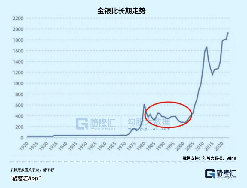 按照这个逻辑,在放弃金本位之前,金银比将彻底改变1980-2006年的稳定局面,回到上升区间。