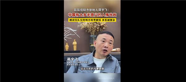 “中国遥遥领先的不是高铁、科技等。,而是与人打交道。越是注重礼仪,效率越低,关系越复杂。”蒋宇飞说。