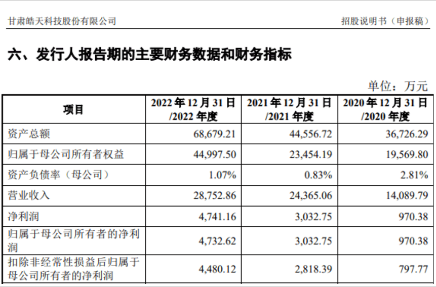 明天科技在2020年、2021年、2022年的营业收入分别为1.41亿元、2.44亿元和2.88亿元;归母净利润分别为970.38万元、3032.75万元和4732.62万元。
