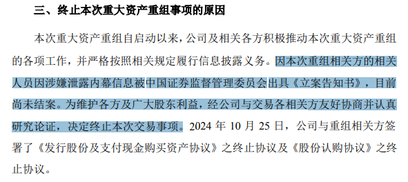 这是自9月24日《M&A六条》发布以来,a股公司首次停止筹备重大资产重组,两家a股公司同时宣布停止。