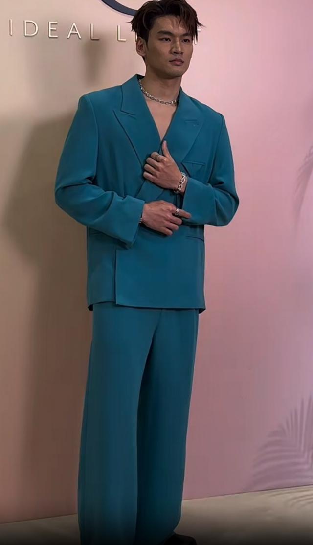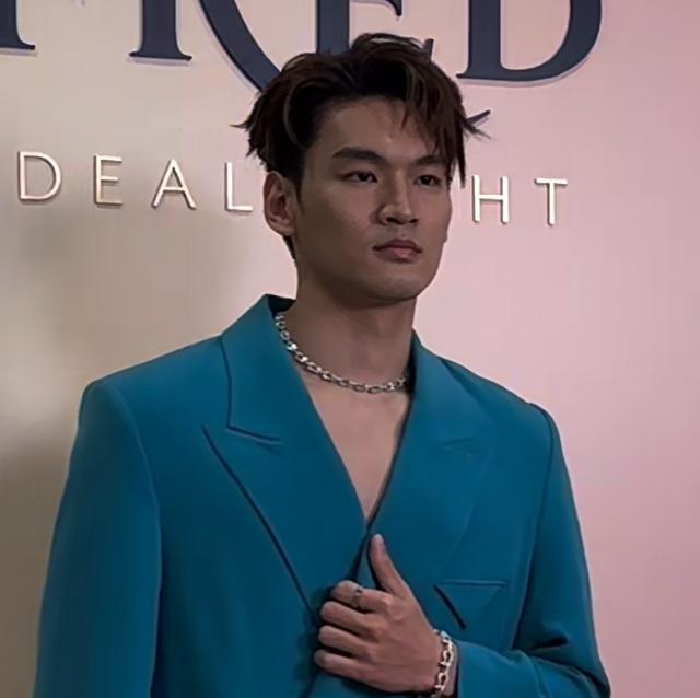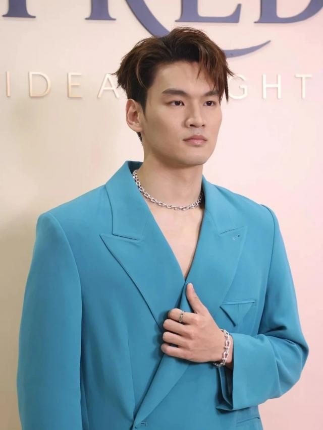 游泳运动员徐嘉余也穿着一套完整的西服,但他只穿了一套187厘米的蓝绿色廓形西服。 高个子的身材硬是被西服分成五五分的身材,不过好在人还是显高的。