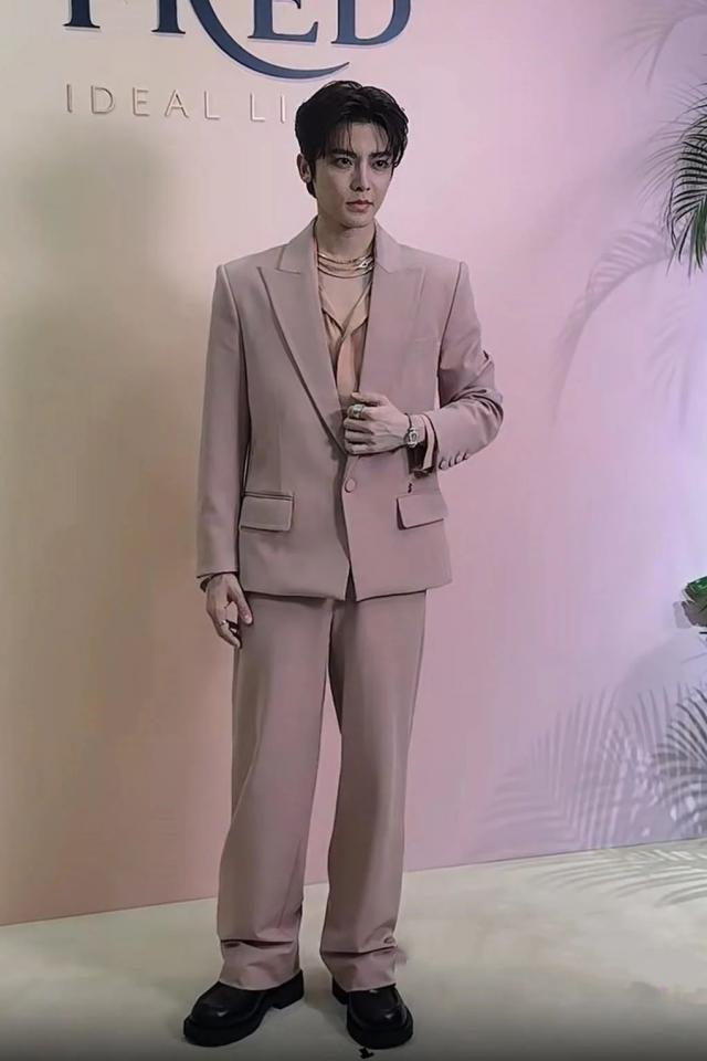 以偶像剧为主的年轻演员侯明昊穿着一套粉色西装参加活动。最近,他的讨论度相当高。毕竟他参加了一个有争议的综艺节目《花儿与少年》。 旅途中的每一个表情、每一句话都被放大分析,一不留神就会影响路人的人气。