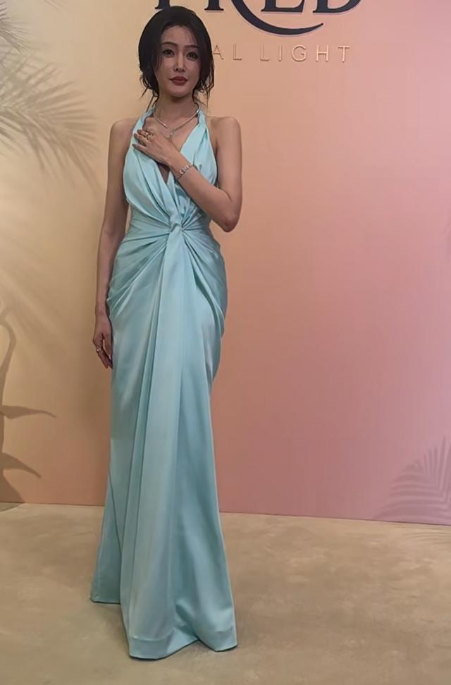 张天爱穿着一件蓝色的脖子连衣裙,留着蓬松小脸的发型,这是她非常擅长的成熟女性风格。但是不知道她是不是状态不好。拍照的时候,她失去了过去那种意气风发、靠美貌“杀人”的霸气。相反,她的动作有点僵硬。