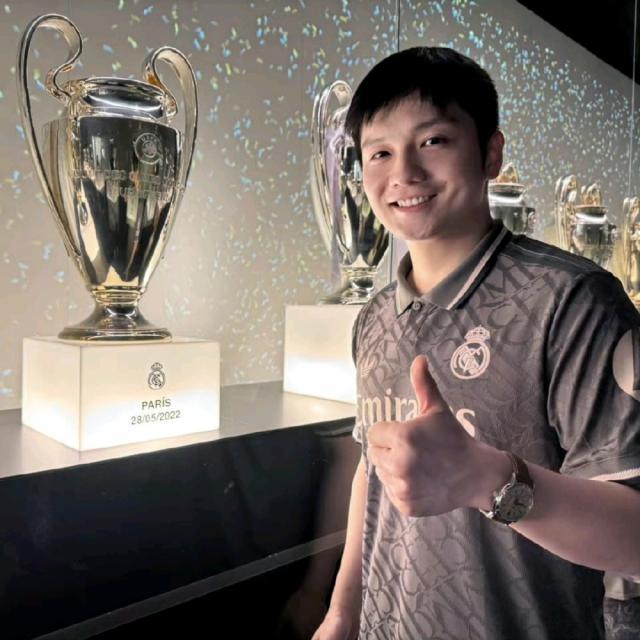 众所周知,樊振东一直是皇马的铁杆球迷。最近,他还有机会亲自去伯纳乌,获得俱乐部赠送的全队签名球衣,并与弗洛伦蒂诺、姆巴佩、维尼修斯、贝林厄姆和莫德里奇合影。