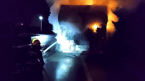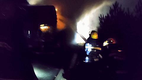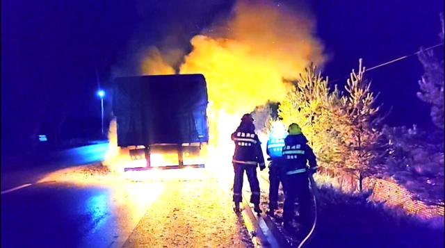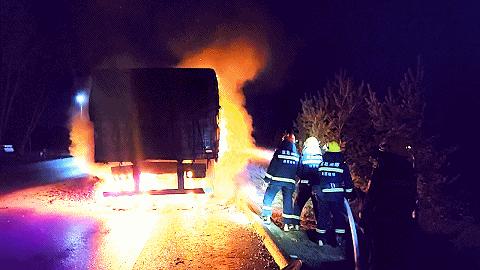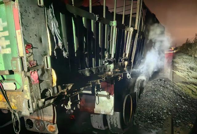 火很大!榆林一辆运煤半挂车在路上突然自燃
