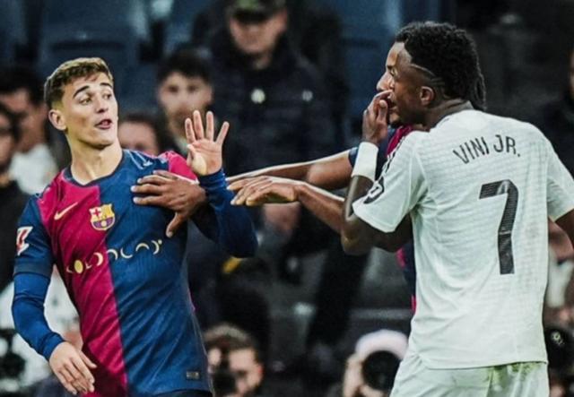 比赛的最后一刻,巴萨又进了一球,4-0。 锁定胜利。这时,刚刚回来的加维决定在维尼修斯受伤的心里撒一把盐。他向巴西人竖起四根手指,讽刺他的对手。加维的手势是向皮克最初经典的“五指山”致敬。