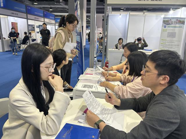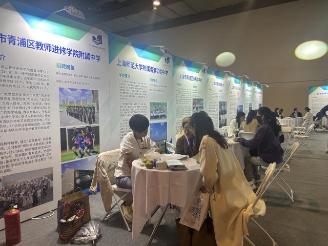 松江实验学校校长高晓红,上海视觉艺术学院附属学校,也在现场“一对一”面试求职者。这次,学校计划招聘 24 名师学科教师。对于高晓红来说,充分热爱老师是从教者最重要的初衷。今年,与学校达成意向的求职者,将提前进入学校进行沉浸式跟岗实习。"从以往的经验来看,年轻教师入职后再进行见习教师规范化培训,各方面的能力储备还略显不足。若能够进行外部培训,使年轻人对教学的各个环节都有初步的了解,将有助于他们更快地完成从校园到职场的过渡。"高晓红说。