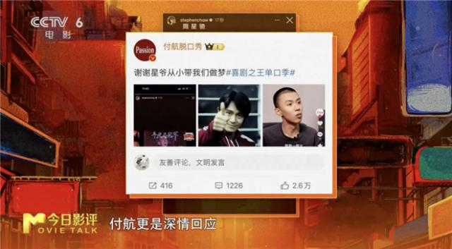 比赛结束后,著名导演和喜剧明星周星驰在社交平台上发表了祝贺信息。付航深情回应:“谢谢星爷从小带我们去做梦。”这种互动迅速点燃了互联网。