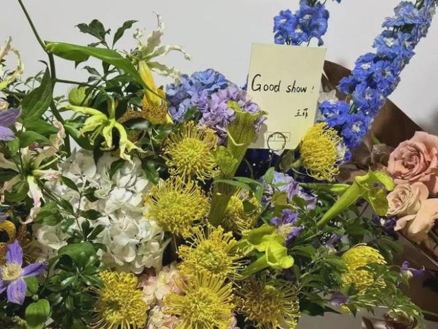 但是王菲送的花篮却被拍到了。上面写着“ Good Show,“王菲”,这个签名引起了热烈的讨论,原来是王菲,不是妈妈,字迹也不像王菲平时的签名,一度让人怀疑这个花篮是假的。