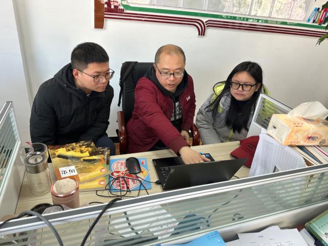 何毅俊(中)指导当地教师备课、教研。