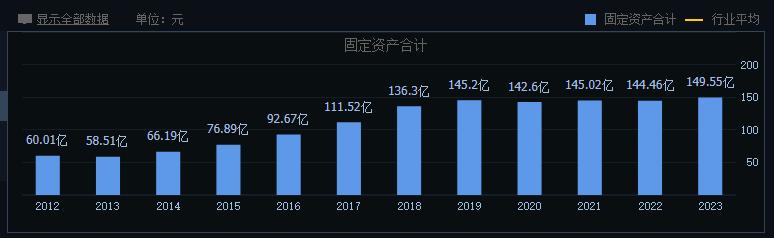 由于对产业链上下游的不断投资,过去十年来福耀玻璃固定资产一直维持在高位水平。截止2023年末,福耀玻璃固定资产金额已经达到149.55亿元,固定资产与在建工程账面价值之和超过200亿元,占净资产的比重则超过60%。