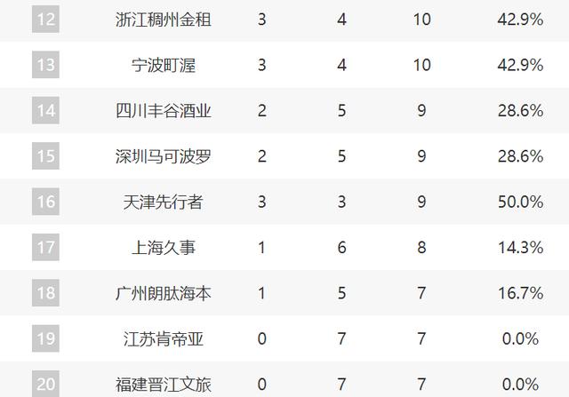 浙江和宁波都是 3 胜 4 负面。浙江是一支令人惊讶的球队。毕竟上赛季可以算是联盟的强敌。不幸的是,王世龙的教练一塌糊涂。幸运的是,教练在这一轮击败青岛止血后逐渐清醒过来。宁波也是一个黑马角色,各自赢得了四川、上海和江苏。他们的精神不断增长,摆脱了最后的排名。