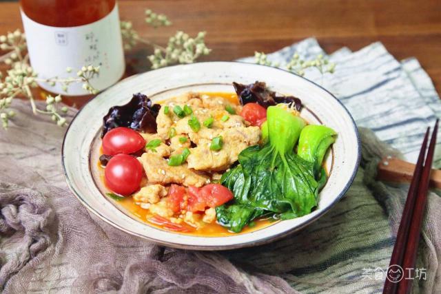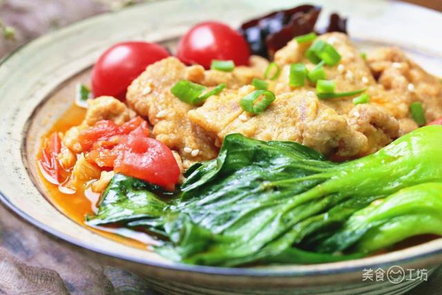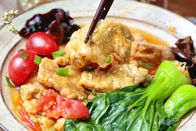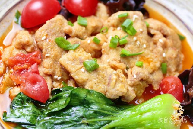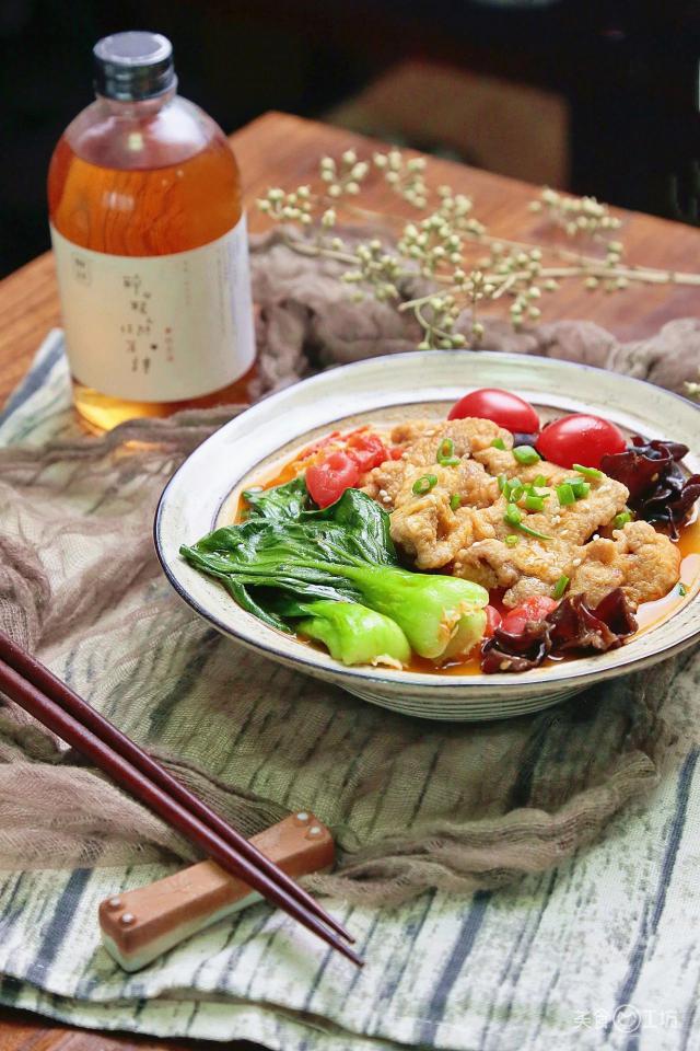 在寒冷的日子里,还有什么比吃一大碗酸甜开胃的小酥肉更令人满意的呢?鲜红的西红柿,金黄的酥肉,绿色的蔬菜和葱花,丰富的配色和味道 6 到飞起!