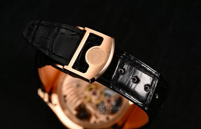 另外,这款手表配有黑色配置。 Santoni 鳄鱼皮弧形表带,给佩戴者带来更舒适的上手感觉。