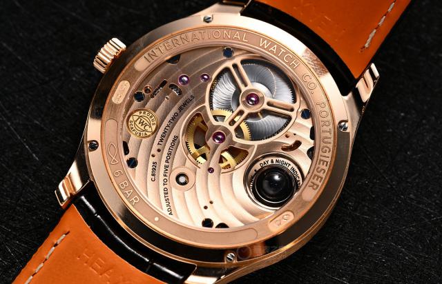 万国 81925 自产机芯由手动上链,没有自动陀的遮挡,也给了全国很大的发挥空间,在机芯底板上做了非常精致的装饰。它以球形昼夜显示背面为核心,世界各地做了一圈圈环形日内瓦纹,巧妙地设计了精致的装饰,结合了这款复杂手表的功能特点。手动上满链后,机芯可以提供 84 小时动储。