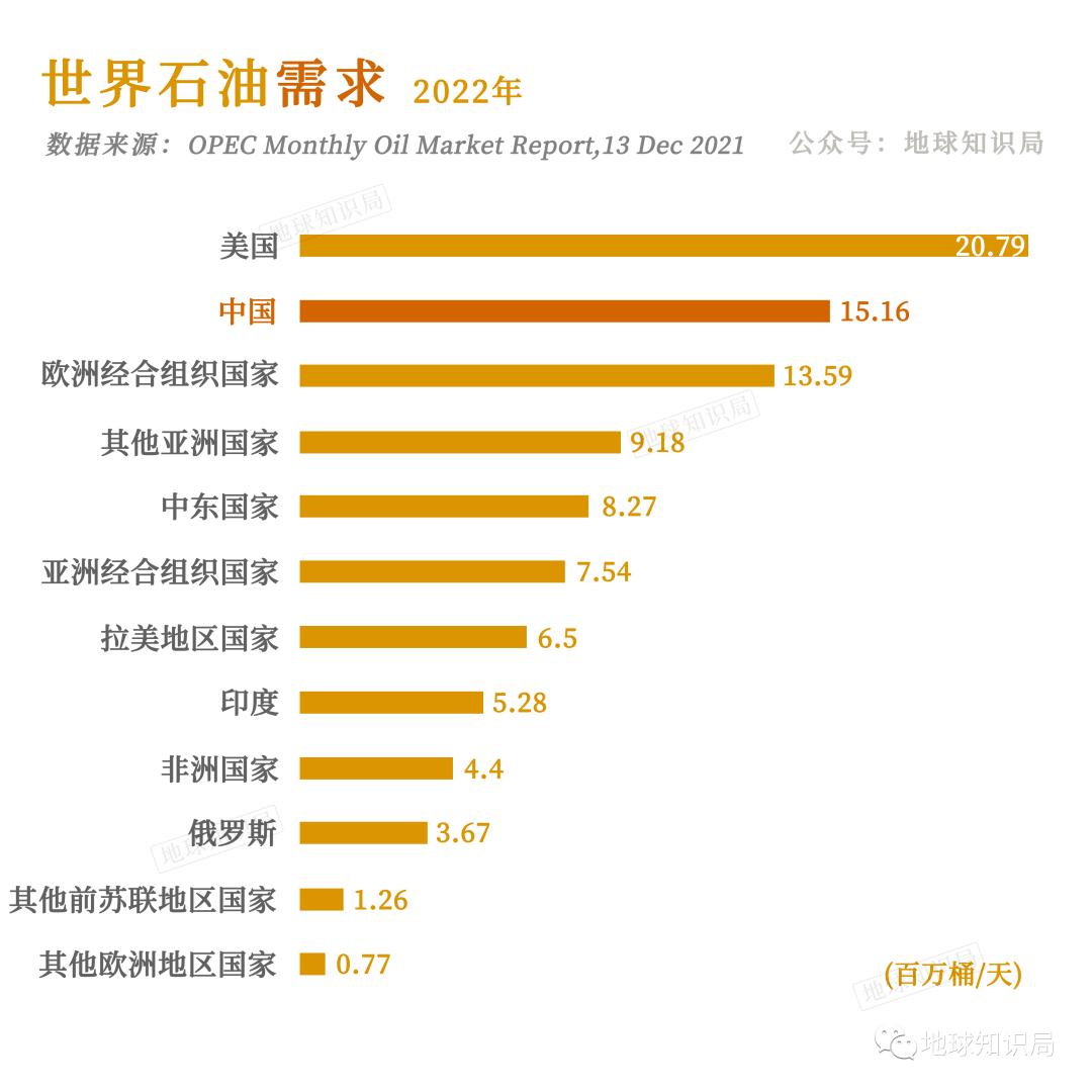 欧佩克(OPEC)根据2022年12月的报告,中国每天消费1479万桶石油,位居世界第二。