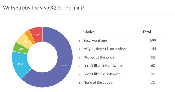 根据外媒 GSMArena 公布的一项民调显示,vivo X200 Pro mini 凭借出色的设计和强大的装备,手机在 X200 最受欢迎的系列。有超出 6 成功的受访者对这台机器表示了购买的兴趣,尽管这台机器 6.3 屏幕尺寸一点也不“英寸” mini ",但是现在很普遍 6.7 与大屏旗舰相比,英尺以上,确实显得小巧多了。但也有顾客对此表示了一些遗憾,比如希望长焦摄像头能够配置。 200MP 传感器,或者希望光学指纹可以换成和 X200 Pro 超声指纹相同。即便如此,vivo X200 Pro mini 总体表现仍然得到广泛认可。