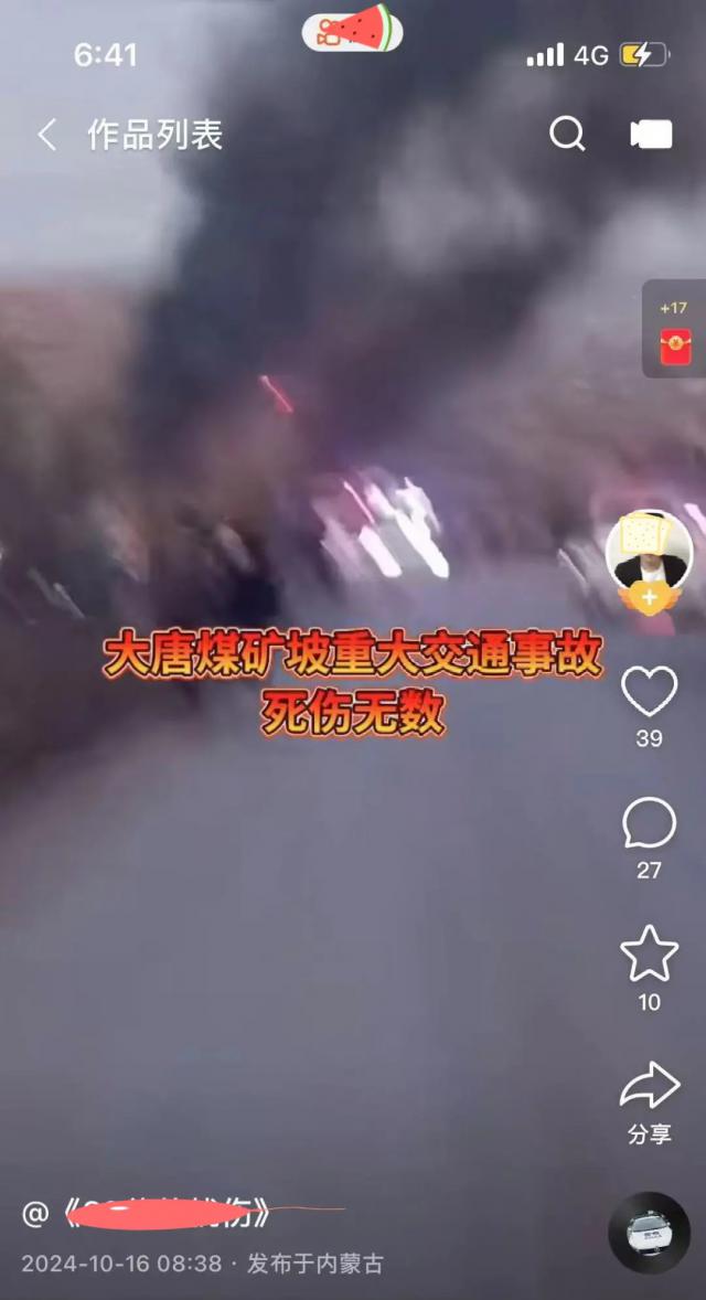 事故发生后的第二天,公安网络安全部门在工作中发现,一位网友在一个短视频平台上发布了一段上述交通事故现场视频,并附文称:“大唐煤矿坡重大交通事故死亡无数”,视频上传者在评论区继续“抢人头”互动误导网友,导致大量谣言信息传播,严重扰乱网络环境秩序。