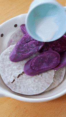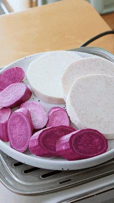 1、做芋泥固定配方,把紫薯和土豆扔进蒸锅里。如果你家里的食材不全,可以换成红薯、南瓜或者山药。但是山药没有甜味,所以要多加糖才好吃。