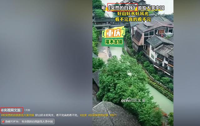 这一次,央视出手,央视文化旅游网发布了一段视频,宣传全国各地的风景,视频的配音是经典歌曲《突然的自我》,被叶珂吐槽为“猥琐”。