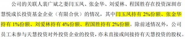 与此同时,回复函显示,天慧投资外资 14 在家庭企业中,持仓 5.09% 深圳汇悦成长投资基金公司(有限合伙)合伙人涵盖裴广斌妻子闫玉凤、张金华、刘爱林、程国胜,为中超股权关联方,4 人合计持有 9% 的份额。