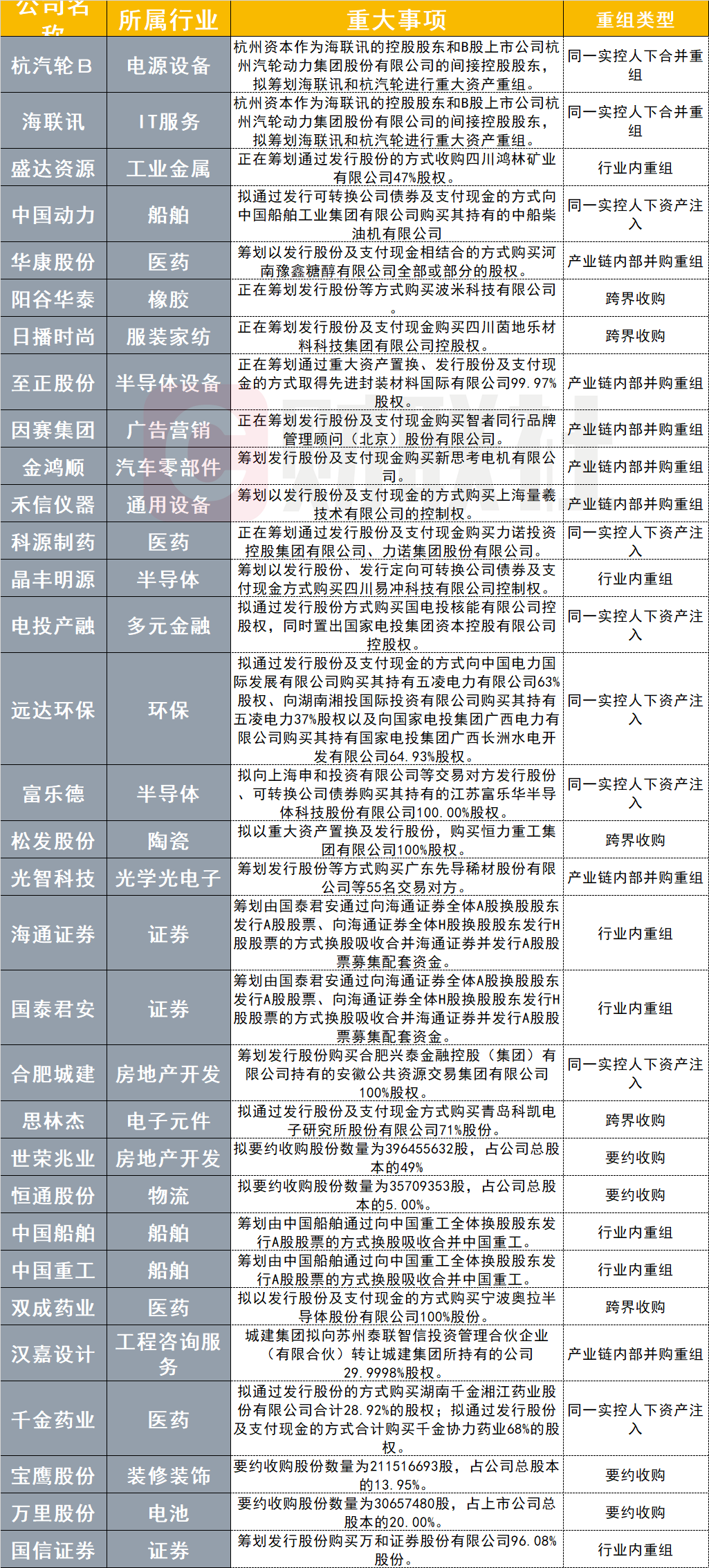 据不完全统计,自9月初以来,由于重大资产重组,已有30多家公司停牌。在这些资产重组中,出现了多种类型,如同行业重组并购、同产业链并购、跨境收购、预约收购等。,其中包括许多引起市场高度关注的央国企之间的合并重组。