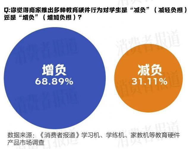 很多受访者都是对的根据《消费者报告》,购买教育硬件对孩子和家长来说并不是“越多越好”。问卷调查数据显示,超过 68% 受访者表示,商家推出多种教育硬件行为,对学生来说是“增加负担”(增加负担),而非“减轻负担”。