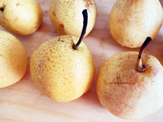 梨子用水清洗干净。