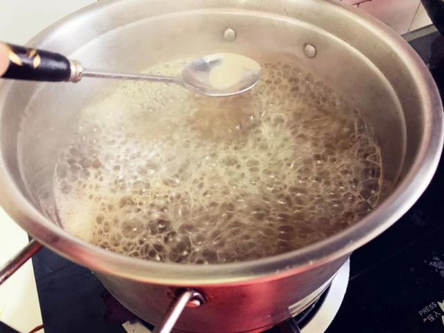 烧开后用小勺子撇去浮沫。