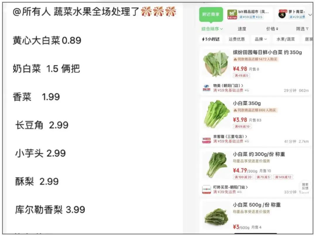 然而,近年来,李哥很少在平台上下单。主要原因是他发现在线平台越来越不实惠。“即使是社区团购,也比小区门口的超市贵。算了,有时候送来的菜也不新鲜。”