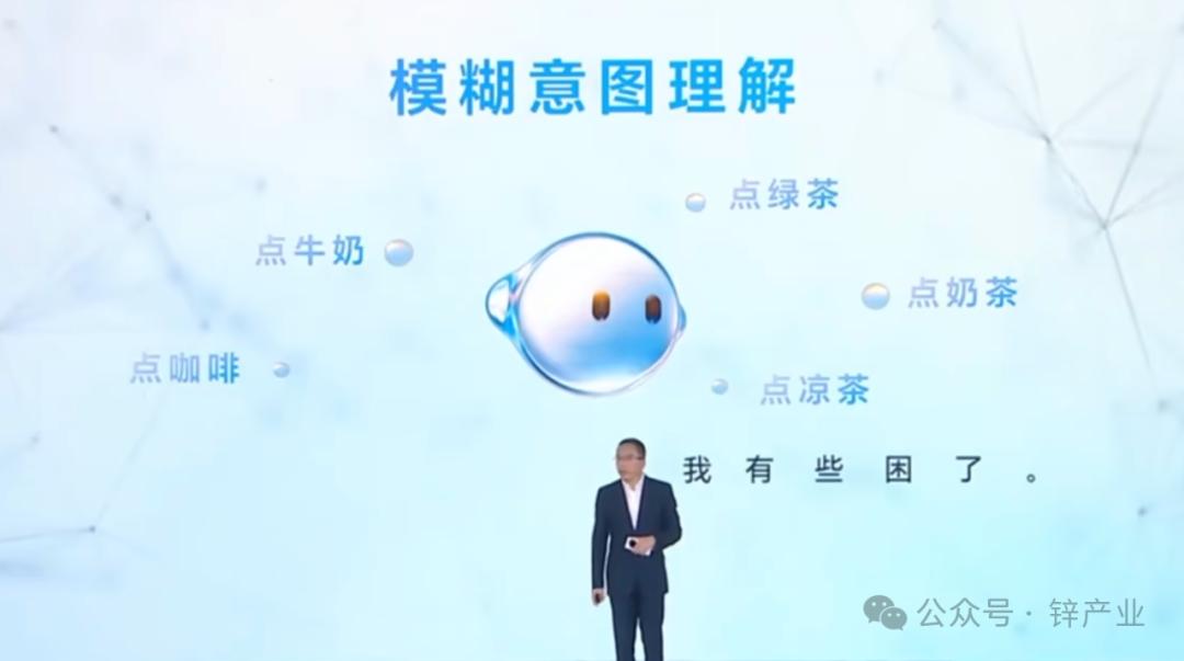 内置智能手机将语音命令拆分理解,分析用户的意图是“累”点杯解困,选择可能的选项(咖啡、绿茶、凉茶等)。).