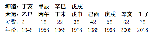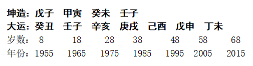 年柱与日柱相互冲突。从四柱的身体分布来看,日柱相当于胯部。在这里,年柱被七煞冲走,也就是被爱人打破。丁火七煞自坐截脚,相当于七煞的官星,丁与坐支亥中的壬水相匹配,意为缠绕和绑定。海水再次进入陈土之墓,意味着壬水绑住了七煞,带着七煞进入墓地。墓地看起来像牢房。