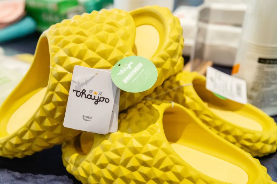 “非食品参与商品比去年翻了一番”,这是评审团的普遍感受。易初莲花,老牌大卖场的代表,今年参加金星奖的新奇泰友软弹榴莲凉鞋系列。