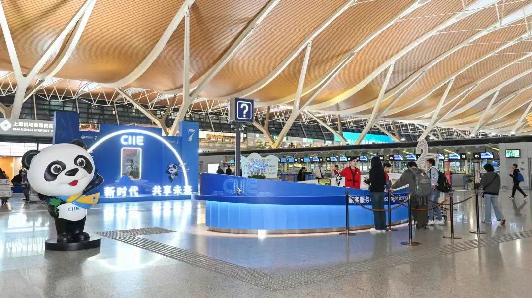上海机场安检增加了中国国际进口博览会专用通道,将启用专用服务中心。