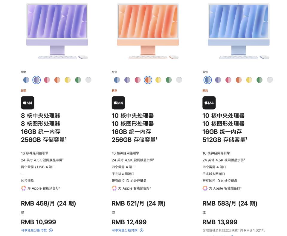 iMac发布M4芯片版:10999元起售,苹果AI正式上线