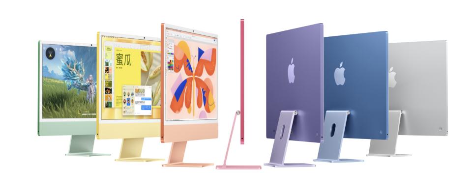 新款的 iMac 选择了和以前 M3 版本设计完全一样,有七种配色:蓝色、绿色、粉色、银色、黄色、橙色和紫色。今年所有配置都可以选择这七种颜色,不像 M3 同样局限于中高配。