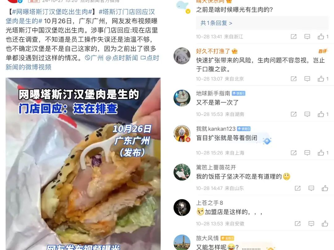 最近在微博热搜上曝光了一个#塔斯汀汉堡吃生肉#。据了解,塔斯汀已经不是第一次出现食品安全问题了。无论事实全景如何,这种隐患的出现必然会损害品牌的声誉和形象,难免会让客户产生“便宜不好”的质疑。