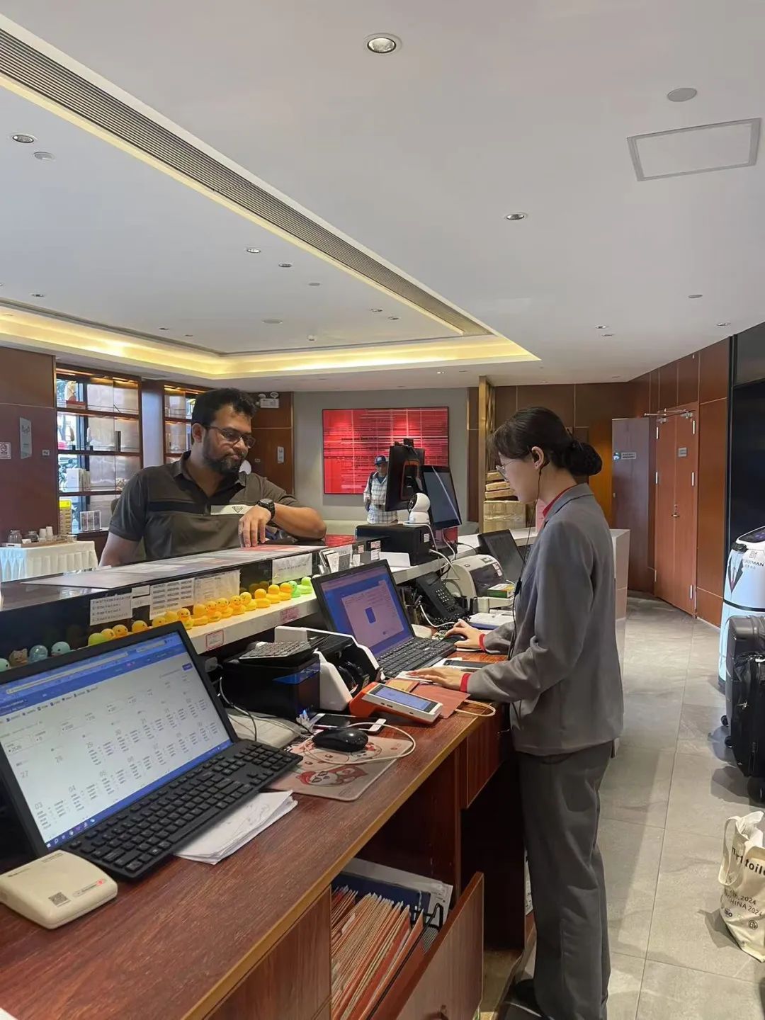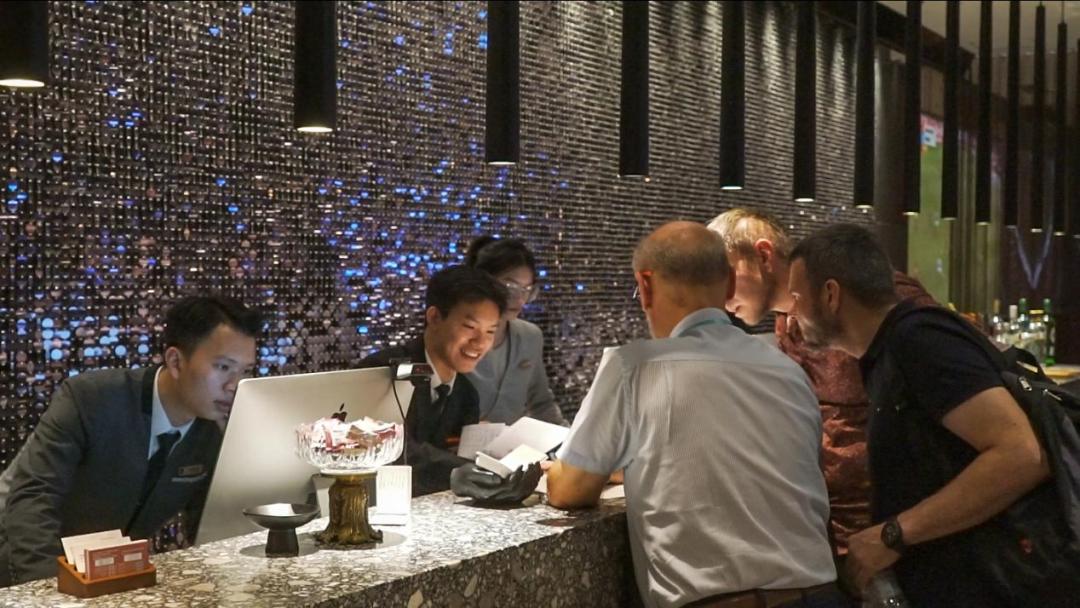 外商在柏高酒店集团旗下的骑士物语酒店办理入住手续