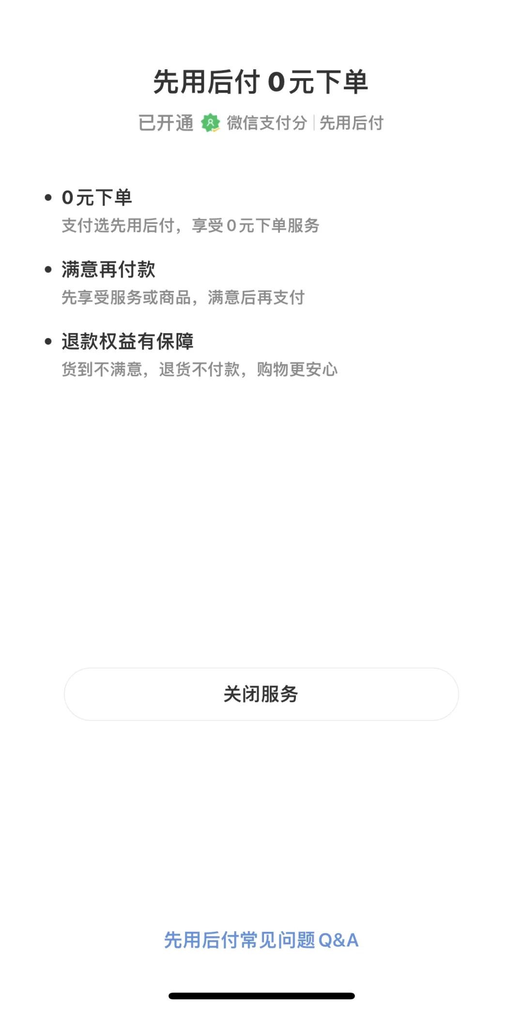 然而,有利于平台和商家的“先用后付”,一旦消费者想要暂停,就会发现比开放困难得多。关闭服务要求所有订单都结束,这需要很长时间。在关闭之前,平台上的每一笔消费支付都会被默认为“先用后付”。更不用说,很多平台的关闭按钮都很隐蔽,很难找到。