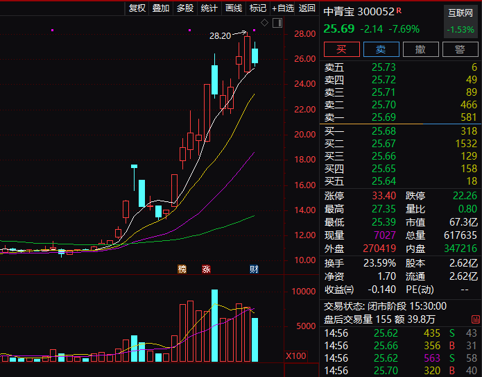 今年7月26日,中青宝收到深圳证监局行政监管措施决定。根据决定,经调查,中青宝实际控制人张云霞因涉嫌犯罪被依法采取强制措施,公司在得知张云霞采取强制措施后未能及时披露相关事宜。