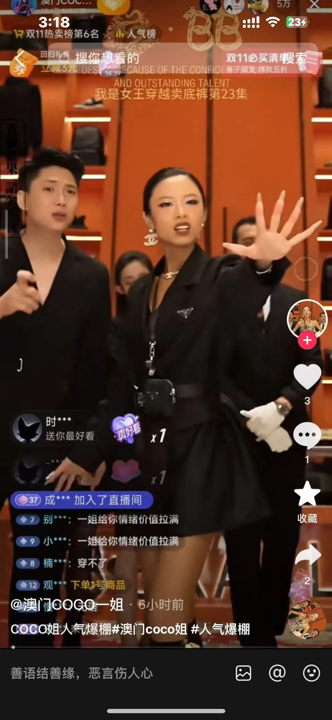 这款双十一澳门coco姐姐是最大的黑马,情感价值十足的直播直接将男装销售带到了另一个高度。