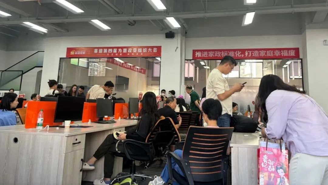记者中午赶到现场,看到一楼有工作人员指导,区分用户和家政人员进行登记。登记后,客户去三楼,员工去二楼。