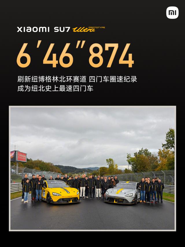 小米基于我们打造四门车的目标。 SU7 Ultra 纽北原型车的认证结果是? 6 ′ 46 ″ 874,不管是纽北官方名单还是公开信息记录,小米 SU7 Ultra 原型车是纽北历史上最快的四门车,无论是量产车还是原型车。