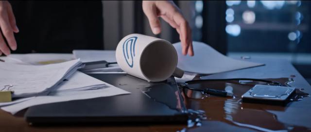 他把杯子弄倒可以说是不小心,但是他也没有在杯子倒下后迅速做出反应,而是看着u盘泡在水里。