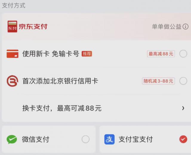 通过全平台,JD.COM商城现在支持微信和支付宝支付宝支付。