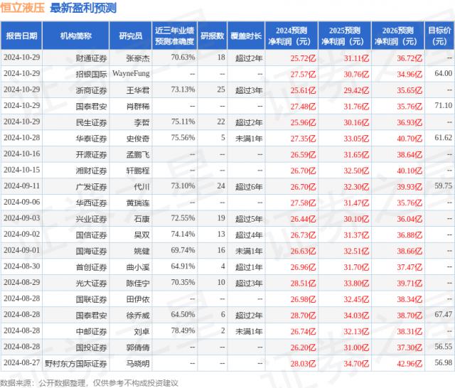 近日,东吴证券有限公司周尔双对恒立液压进行了研究,并发布了《2024》调查报告 第三季度报告评价:人员扩张造成短期盈利能力压力,对公司长期发展空间持乐观态度。本报告对恒力液压进行了买入评级,目前股价为 53.0 元。