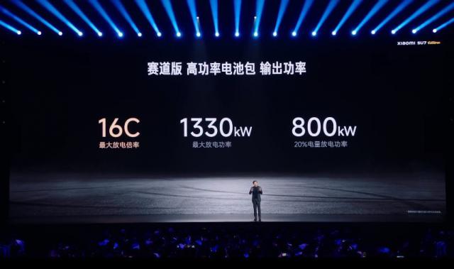 小米 SU7 Ultra 性能超强,1548PS 超强马力零百加速 设计最高速度的1.98S 350km/h。为了确保安全,该车还内置了三个电机扭矩矢量控制系统。赛道版的大功率电池组是宁德时代打造的,放电倍率最大。 16C,最大放电功率 1330kW,为驾驶提供了充足的动力。