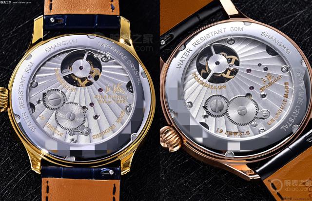 这两款手表都能透过背面的蓝宝石镜面完全透过表后盖,欣赏到内部手动上链机芯的细节美。上海砂金石表盘配有砂金石表盘。 F3C 陀飞轮机芯;上海陨石盘配备的 F3B 陀飞轮机芯,两个机芯夹板都装饰着太阳纹工艺,展现出放射纹,美感十足。可以提供上满链 40 动力储存时间为每小时, 28,800 次摆频运行,保证走时精确,让佩戴者放心。