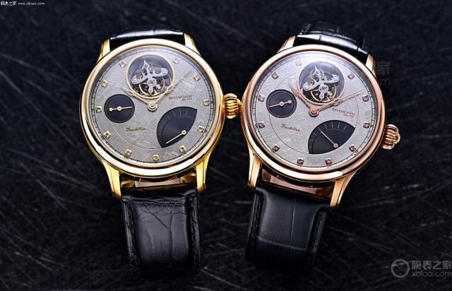 左:上海表复兴 · 浩瀚陀飞轮砂金石盘 右边:上海表复兴 · 浩瀚陀飞轮陨石盘